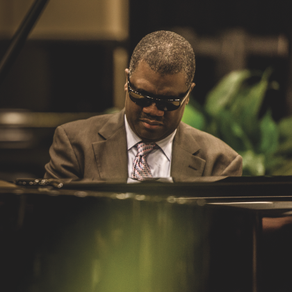 TROY, AL – Sitting behind the smooth, flawless keys at one of Troy University’s new Steinway pianos, Marcus Roberts gently smiles as the jazz ensemble winds things down with a Big Band refrain.